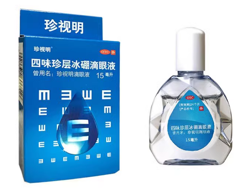 珍视明四味珍层冰硼滴眼液15ml视疲劳人工泪液眼药水